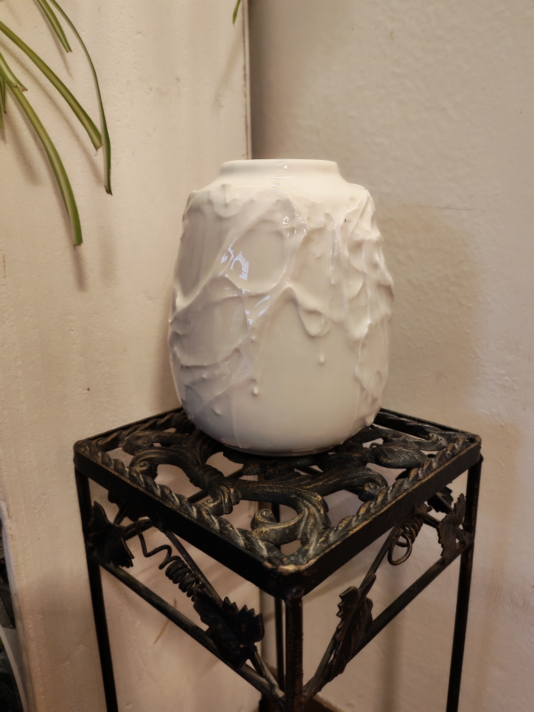 La cuisson à 1 280°C après émaillage vitrifie le vase et le rend imperméable.